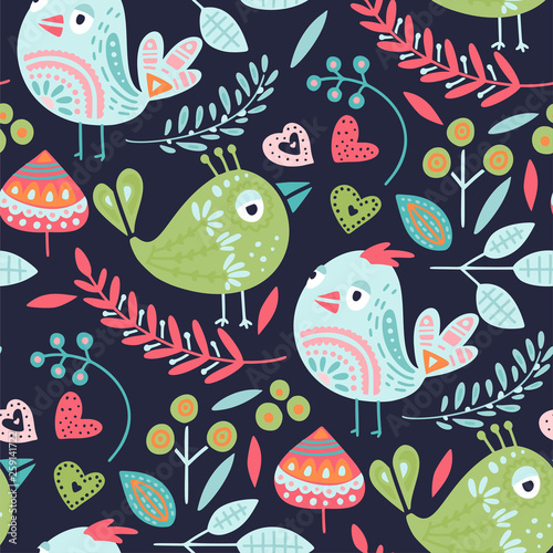 Tribal bird seamless vector pattern.