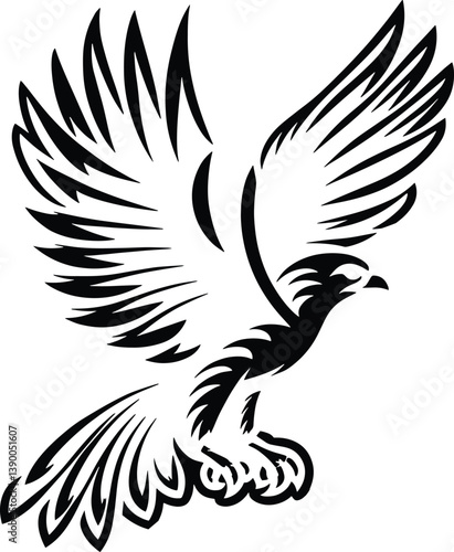 Tribal Eagle Tattoo Vector - Sacred Geometry, Cricut, Clipart, Black and White Design