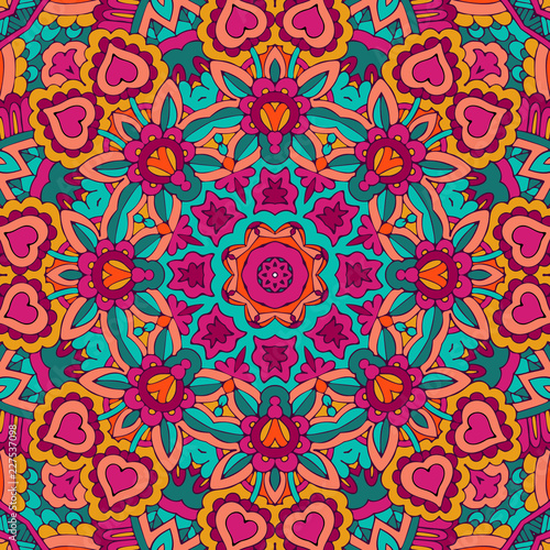 Tribal indian ethnic seamless design. Festive colorful mandala pattern