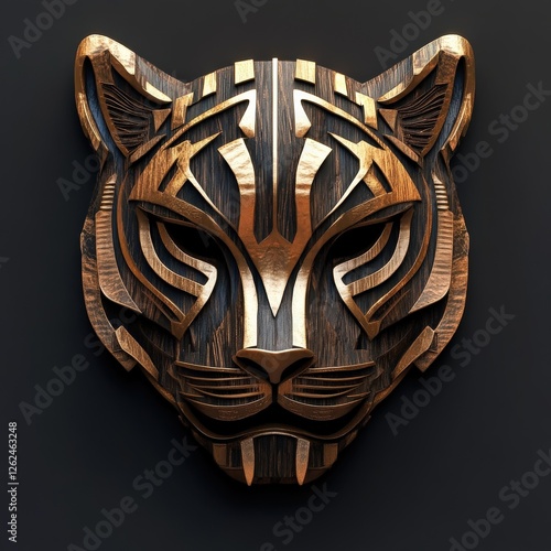 Tribal Tiger Mask - Wooden Artistic Illustration of a Tiger's Head