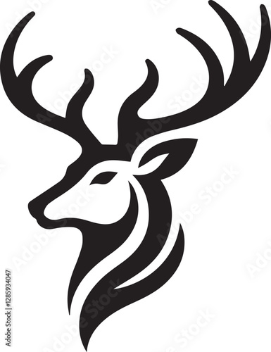 Tribal-Style Deer Head Vector Illustration in Black and White