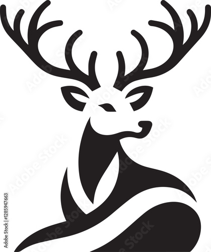 Tribal-Style Deer Head Vector Illustration in Black and White