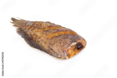 Trichogaster pectoralis, fried salid fish thai food on white bac