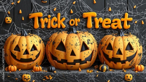Trick or Treat sign: Halloween background image for invitation, greeting card, poster, flyer, banner. Jack o lantern. Pumpkin. Season. October. Festive