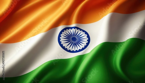 Tricolour Indian flag with Ashok wheel background illustration, 15th August Indian Happy Independence Day poster design