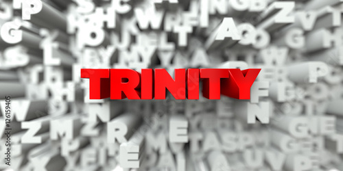 TRINITY - Red text on typography background - 3D rendered royalty free stock image. This image can be used for an online website banner ad or a print postcard.