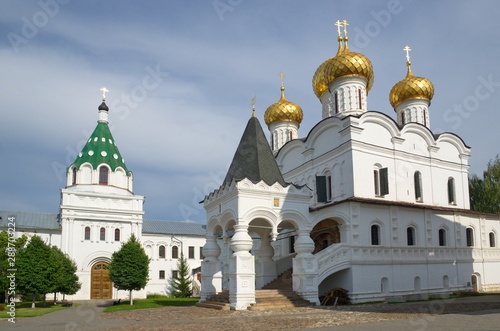 Trinity Cathedral and the Holy gate with the gate Church of Chrysanf and Daria in the Holy Trinity Ipatiev monastery in Kostroma. Golden Ring of Russia
