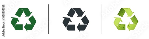 Trio of eco-friendly recycling symbols in green, black, and gradient colors for environmental campaigns.Generative AI