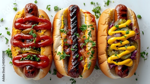 Trio of Irresistible Hot Dogs with Vibrant Condiments