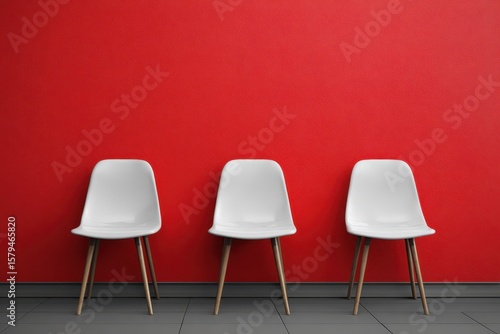 Trio of White Seating Against a Bold Red and Sleek Grey Wall in a Modern Office Setting