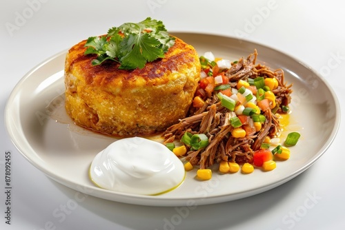 Trishas Pulled Pork and Cheese Grit Cake with Corn Salsa