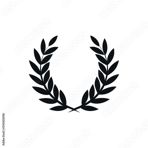 Triumph and Glory concept. A minimalist black laurel wreath silhouette, a classic symbol of victory, honor, and achievement.