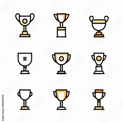 Trophy cups, golden goblet, silver reward, champion bowls. Contest winner award collection, prize cup