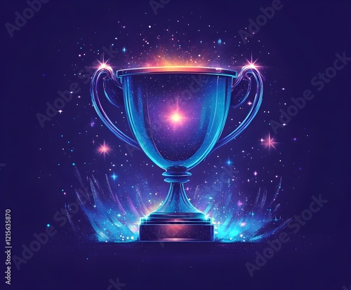 Trophy icon surrounded by glowing stars, symbolizing victory and achievement.