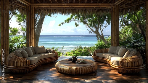 Tropical Bamboo Patio with Ocean View Luxury Resort Interior Design