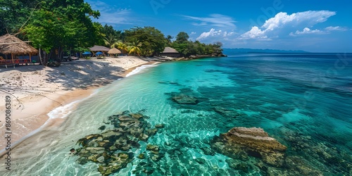 Tropical Beach with Crystal Clear Water and Lush Green Trees
