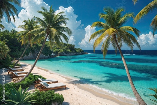 Tropical Beachfront Oasis with Palm Trees and Breathtaking Turquoise Waters