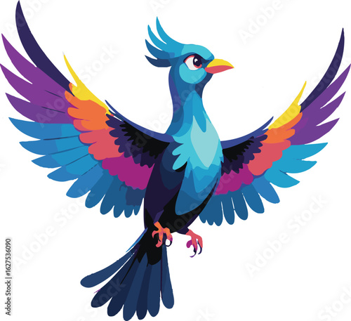 Tropical Bird Vector | Flat Color Wings Spread | 8-10 Color Palette | No Background EPS/SVG Vibrant Flying Bird | Open Wings Colorful Design | Minimal Avian Art | Flat Style Clipart Colorful Wings V