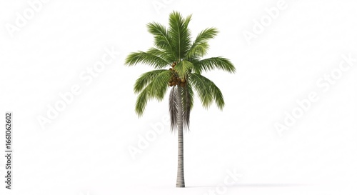 Tropical Coconut Palm Tree with Ripe Coconuts Isolated on a Clean White Background
