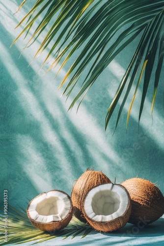 Tropical Coconuts and Palm Leaf with Light and Shadows