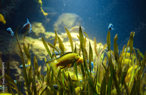 Tropical fish in aquarium in zoo