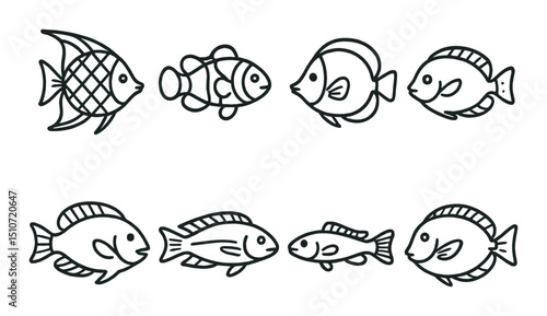 Tropical fish linear icon set. aquatic and marine line art symbols for designers