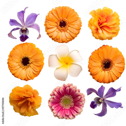 Tropical Flower Arrangement With Gerberas and Orchids on a White Background