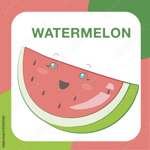 Tropical fruit flashcard for Children. Cute design flashcard for toddlers. Ready to print. Printable game card. Educational card for preschool. Vector illustration.