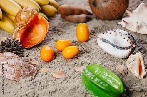 Tropical fruits. lots of colorful ripe tropical fruits