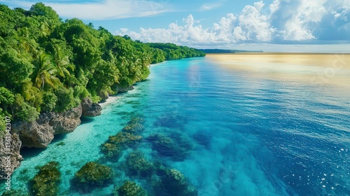 Tropical Island Paradise: Ocean, Beach, & Lush Green - Aerial Views