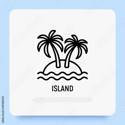 Tropical island thin line icon: palms, sand and sea. Modern vector illustration of summer vacation.