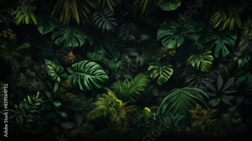 Tropical jungle border with lush leaves surrounding empty space, nature background with copy space