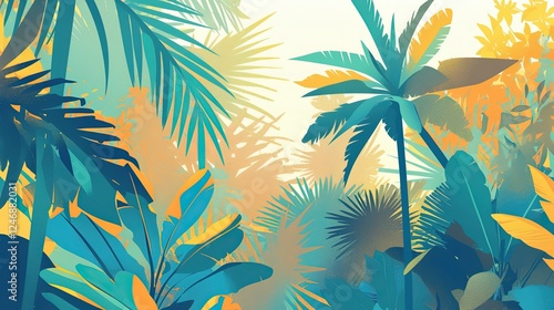 Tropical jungle foliage at sunrise, ideal for nature backgrounds