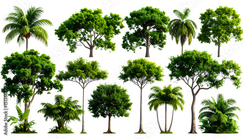 Tropical Jungle Tree Shapes – 3D Cutout Collection, Transparent Background
