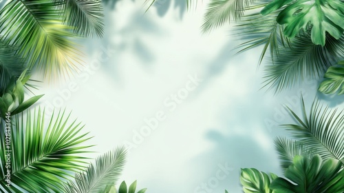 Tropical Leaves Bordering a Light Blue Background