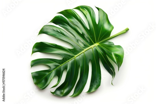 Tropical palm leaf Monstera isolated on white background. Flat lay top view copy space