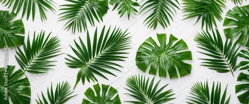Tropical Palm Leaves Pattern on White Background for Summer Design Concepts with Space for Text and Creative Projects