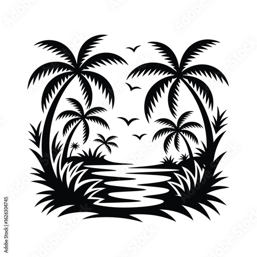 Tropical Palm Tree Silhouette on a Secluded Beach