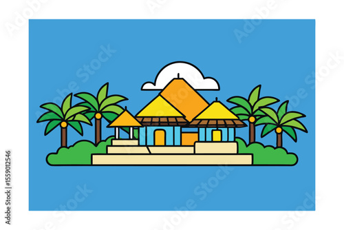 Tropical Paradise Island Getaway Villa Illustration