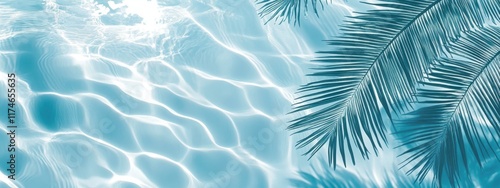 Tropical paradise, turquoise water, palm fronds silhouette, pastel pink and blue hues, dreamy ethereal atmosphere, soft focus, tranquil ocean scene, beach vacation vibes, serene coastal landscape, gen