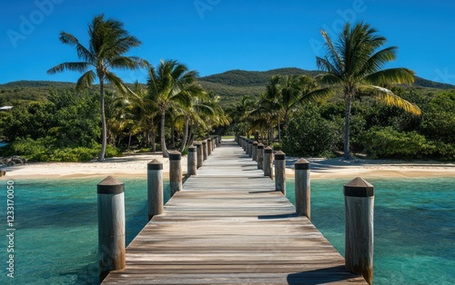 Tropical Paradise: Wooden Dock Leading to a Secluded Beach
