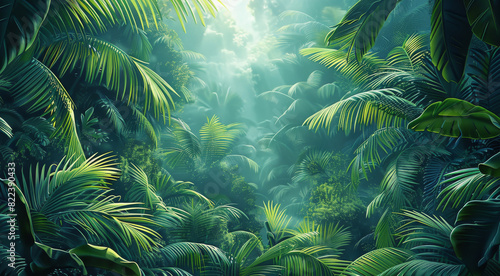 Tropical rainforest texture, realistic illustration, Bright and colorful illustration. Generative AI.