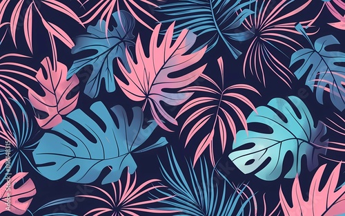 Tropical seamless pattern with palm tree leaves. Hand drawn floral background.