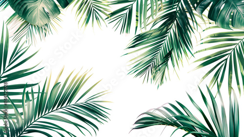 Tropical set of palm leaves, exotic plants, palm leaves, botanical illustration.
