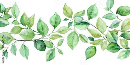Tropical watercolor green leaves isolated on transparent background