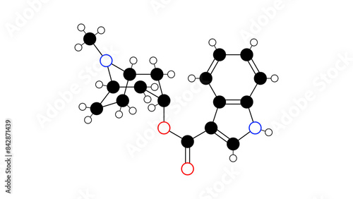 tropisetron molecule, structural chemical formula, ball-and-stick model, isolated image antiemetic agent