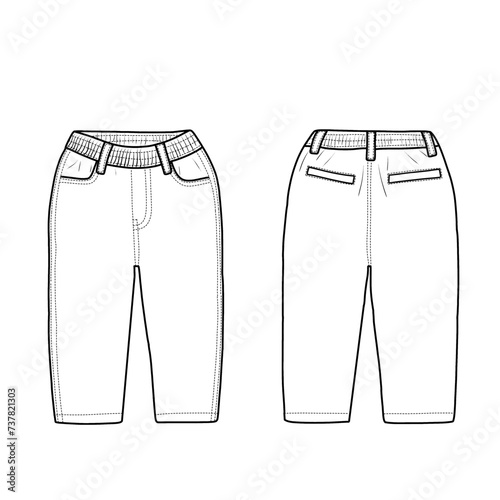 Trousers for kids flat sketch vector illustration technical CAD drawing template
