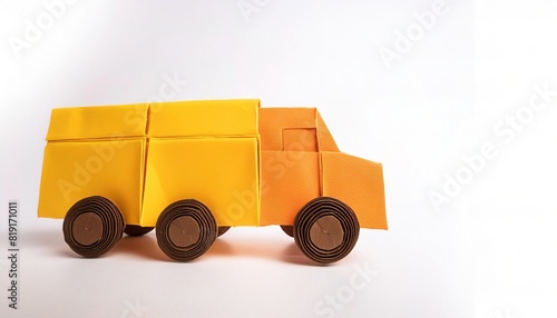 truck driving automobile concept paper origami isolated on white background with copy space for your design for transportation and technology