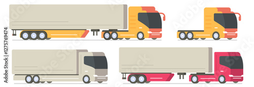 Truck lorry cargo freight big and small delivery vehicle transportation set icon vector illustration, industry trailer modern graphic minimal flat 3d design, shipping cars automobiles semitrailer