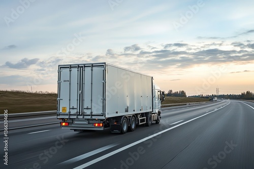Truck on Highway with Compact Trailer Carrying Explosive Cargo for Safe Transportation